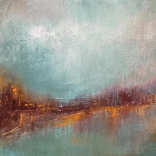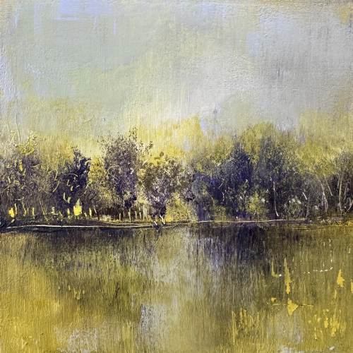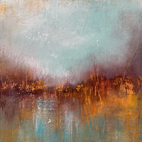 Our 'Block Works' are small, original artworks created to stand on their own on a mantlepiece, windowsill or small table as well as having the option to hang on a wall. Each piece measures 15 x 15 cm with a depth of 2.5 cm. The painting continues around the sides, where it is also signed, and the back is neatly finished, stamped, and signed.