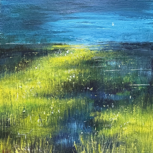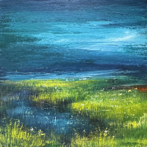 An atmospheric collection of acrylic paintings by Tricia Barna, each presented in a bespoke frame.