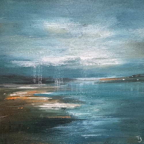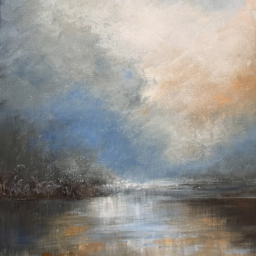 An atmospheric collection of acrylic paintings by Tricia Barna, each presented in a bespoke frame.